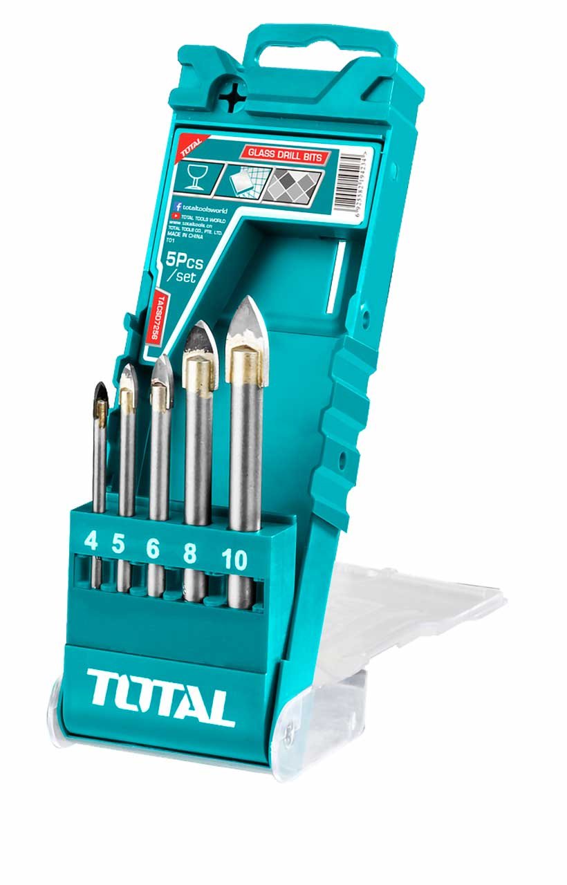 Tamanho: 4 mm, 5 mm, 6 mm, 8 mm, 10 mm, 5 peças de brocas de vidro, Embaladas em caixa de plástico,