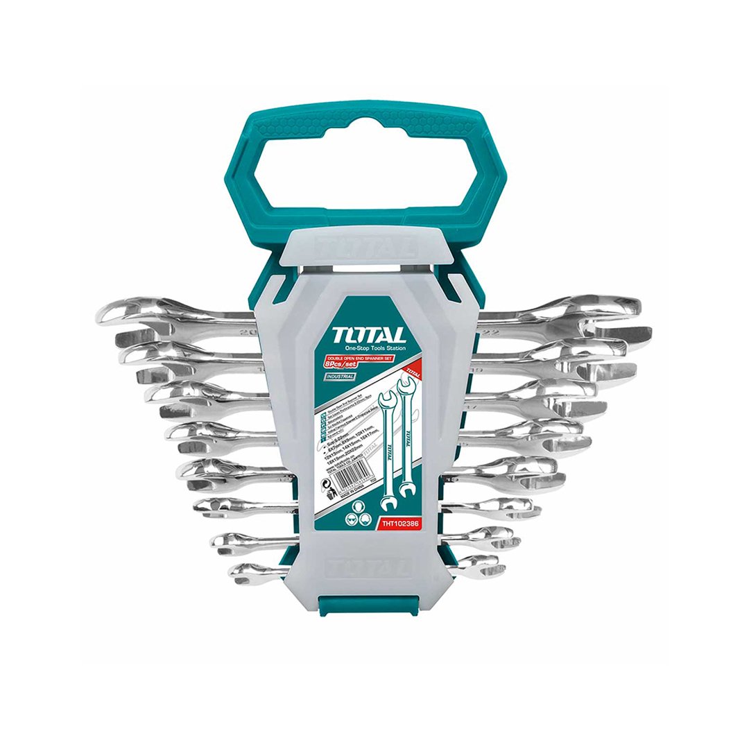 Conjunto de chaves de boca duplas de 8 peças Tamanho: 6-22mm, 6x7mm, 8×9 mm, 10x11mm, 12x13mm, 14x15mm, 16x17mm, 18x19mm, 20x22mm, Polido fino.