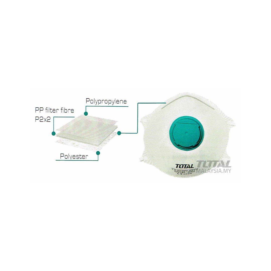Um tipo de respirador, Com filtro, Material: polipropileno, Classe de proteção: FFFP2, Comprimento: 150mm Caixa de: 12 peças, Aplicações sugeridas para trabalhos de retificação, lixamento de varredura.