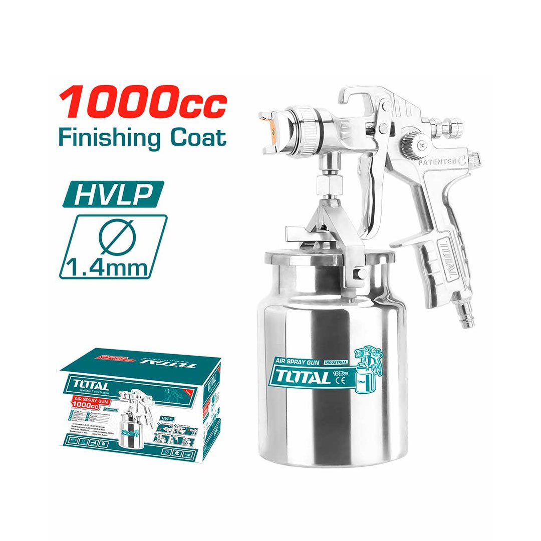 Pressão: 2,5 – 3,5 barras, Capacidade: 1000cc, Diâmetro: 1,4 mm, Opcional: 1,3 mm – 2,5 mm, consumo de ar: 119-200 l/min (4,2-7,1 cfm), Largura: 180-250 mm, Entrada de ar: 1/4″.