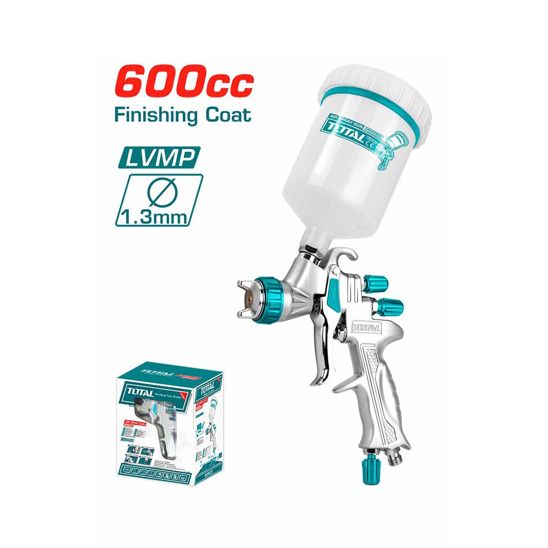 Bocal: 1,3 mm , Pressão: 2 barras, Capacidade de tinta: 600cc, Peso: 0,85 kg.