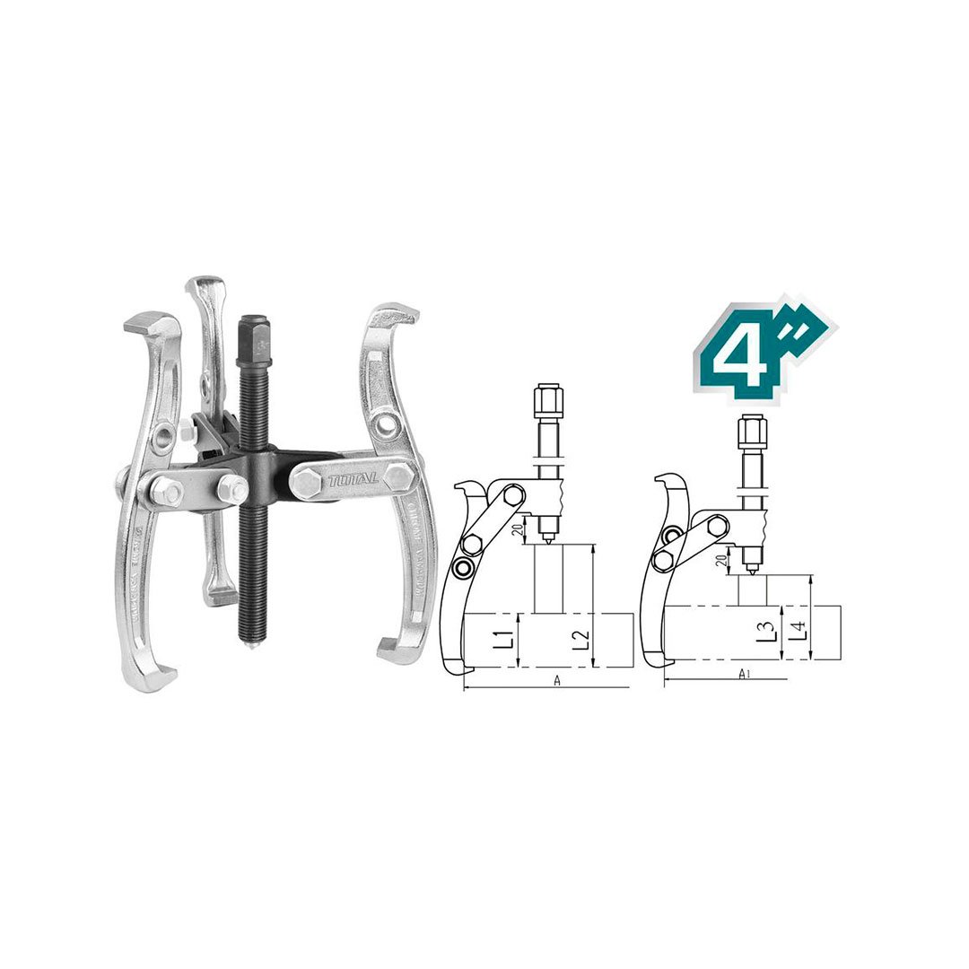 Tamanho: 4″, Material: aço cromo-vanádio (Cr-V), Dimensão: A: 120mm, A1: 125mm, L1: 40mm, L2: 87mm, L3: 38mm, L4: 60mm, Força máxima: 4000 kg,