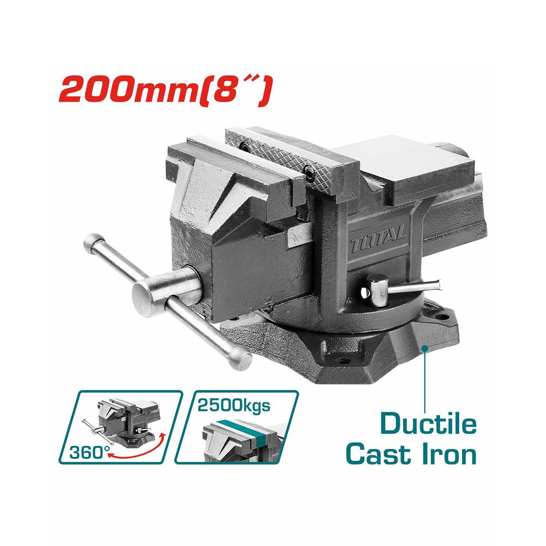Tamanho: 200 mm (8″), Material: Ferro fundido dúctil, Força máxima: 2500 kg.