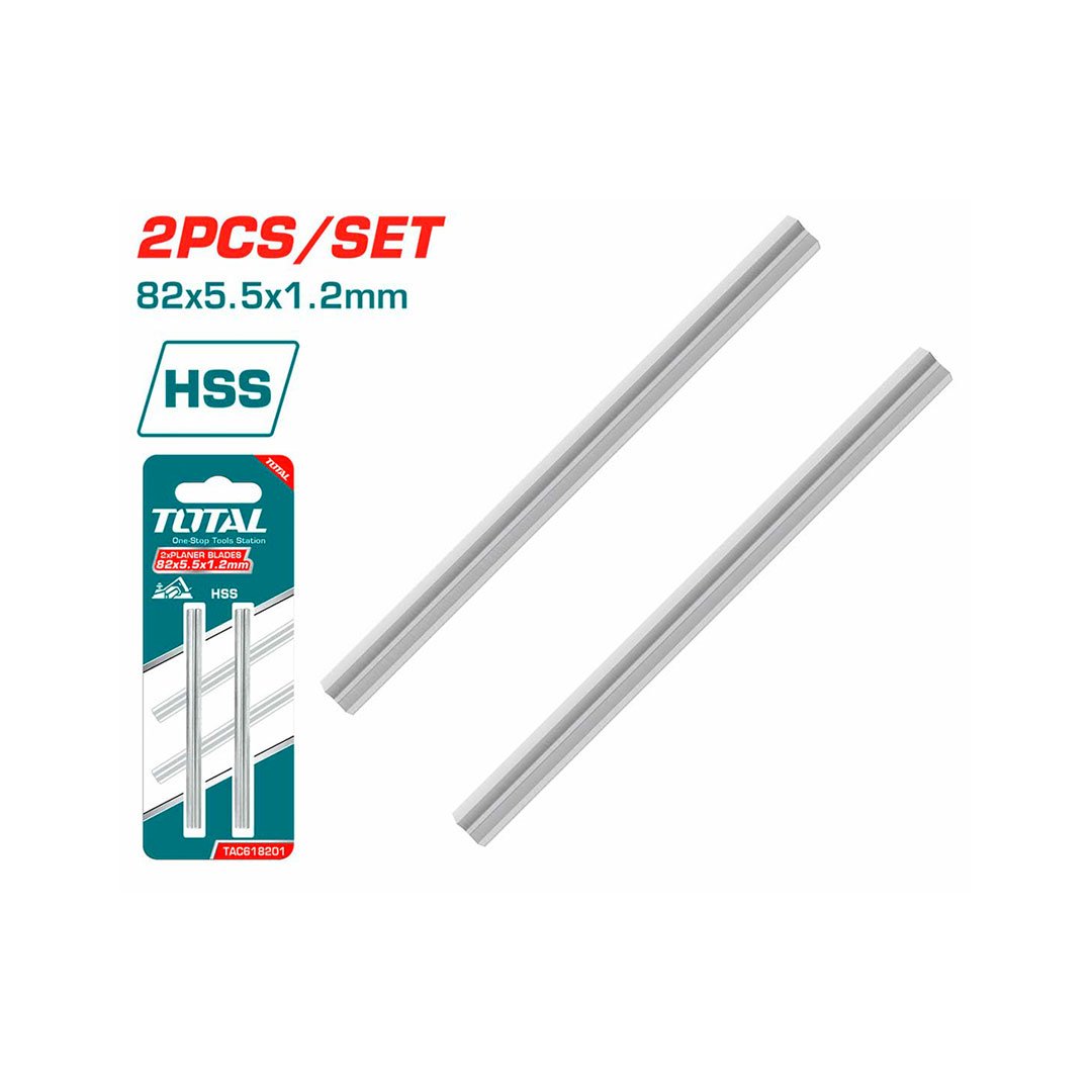 Tamanho – 82×5,5×1,2 mm. Tipo – Lâminas HSS, Adequado para plaina elétrica TL1108236 , Embalado em blister duplo.